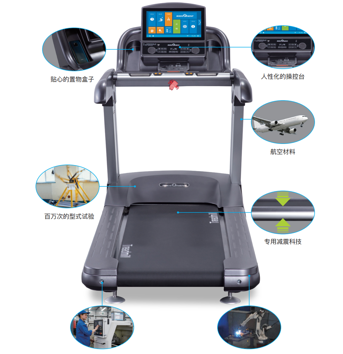 1. 整机设计是否时尚美观?跑台是否稳固?减震设计如何?是否有急停装置、防护盖是否严实?是人体工学设计还是采用通用模具复制别的品牌?